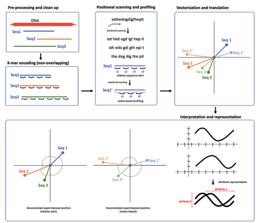 The foundational model of TIPs, TIPs-HiDE encodes genetic sequences with higher-dimensional features, including transcription and translation motifs, base compositions, and functional repeats critical for restriction enzyme-based cloning and genetic engineering. It is currently being developed for applications in medicine, agriculture, and biotechnology.